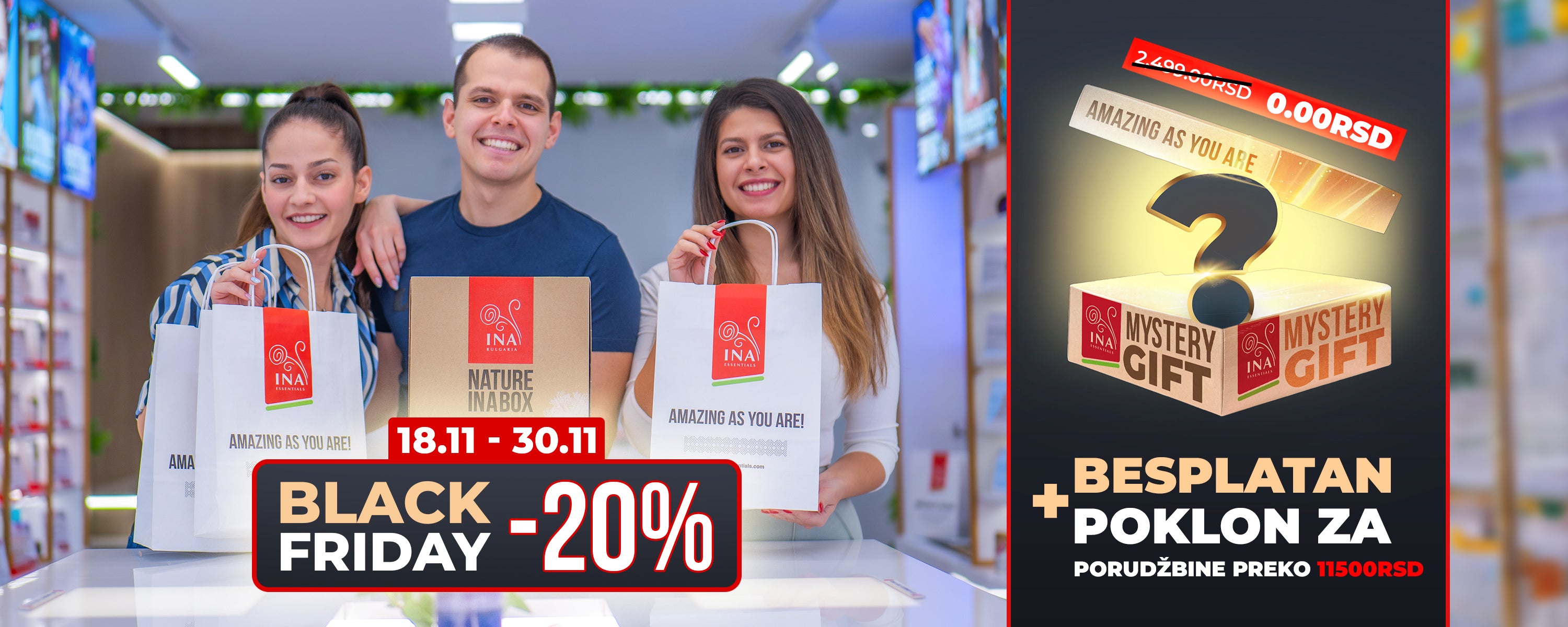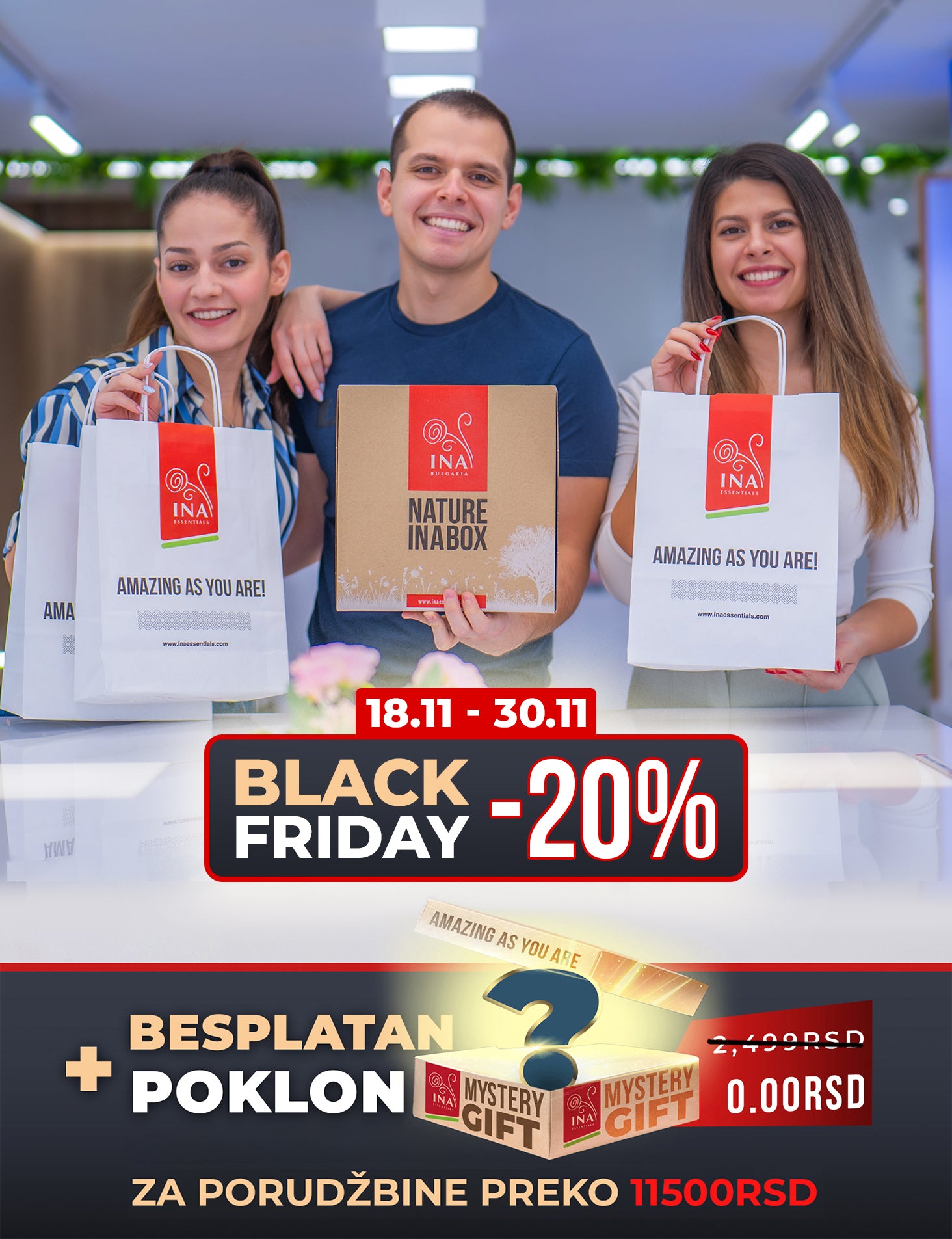 Uživajte u kompletnom iskustvu sa InaEssentials proizvodima. Naši InaEssentials prirodni proizvodi stižu u Prirodnoj INA Kutiji - prilagođenoj dizajnerskoj recikliranoj kartonskoj kutiji koja prenosi istoriju i vrednosti naše porodice - brigu o prirodi i brigu o Vama, našim kupcima.