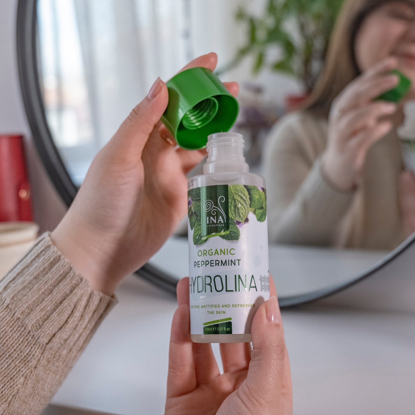 "Ovaj hidrolat je pažljivo izrađen od ručno ubrane nane iz naših porodičnih organskih polja."