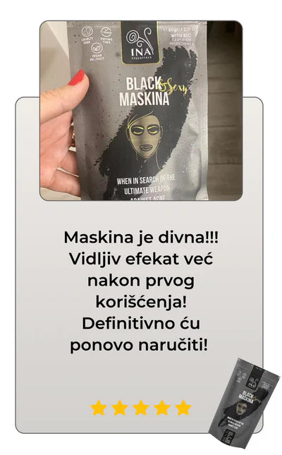 Nakon manje od mesec dana redovne upotrebe lekovito dejstvo Crne Maskine se u potpunosti oseća. Akne su značajno smanjene, lice je bez mitisera I drugih nečistoća. Barijera kože je jača i njena prirodna sposobnost da reguliše proizvodnju ulja je regenerisana što dovodi do lepog i blistavog izgleda. Uživajte u svojoj najboljoj koži ikada!