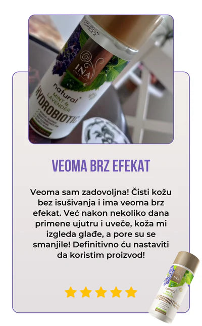 Hydrobiotic - Lavanda & Nana je više od prelepe boce. Ona se oslanja na stvarne priče naših zadovoljnih korisnika. Sa impresivnom ocenom zadovoljstva korisnika od preko 90%, naš proizvod dokazuje svoju efikasnost u borbi protiv akni i balansiranju pH vrednosti kože, dok poboljšava ukupno zdravlje vaše kože. Nemojte samo verovati našoj reči. Pročitajte priče naših kupaca OVDE.
