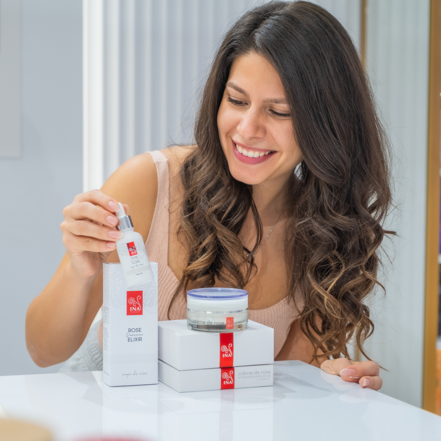 InaEssentials Ružin Eliksir je intenzivan, visokokvalitetan anti-age serum za lice, formulisan sa pravim uljem ruže i moćnim biljnim aktivnim sastojcima. Njegova lagana formula pruža svakodnevnu negu za podmlađivanje, dubinski hidrira, zateže kožu i bori se protiv znakova starenja.