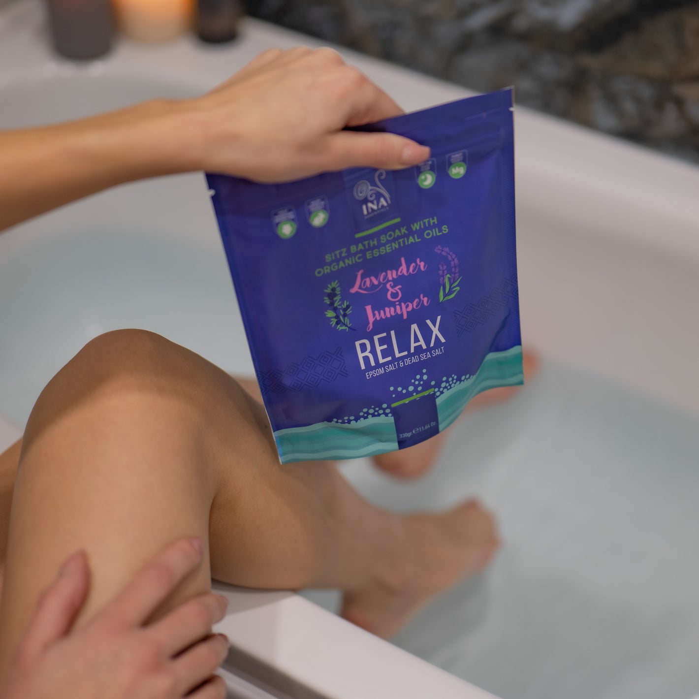 Naše InaEssentials Relax soli za kupanje su odlična opuštajuća formula sa prirodnim sastojcima: Čista Epsom so, soli mrtvog mora, ulje organske lavande i borovnice. Pruža olakšanje od stresa i potpuno opuštanje tela, oslobađanje umornih nogu i obnavljanje sna.
