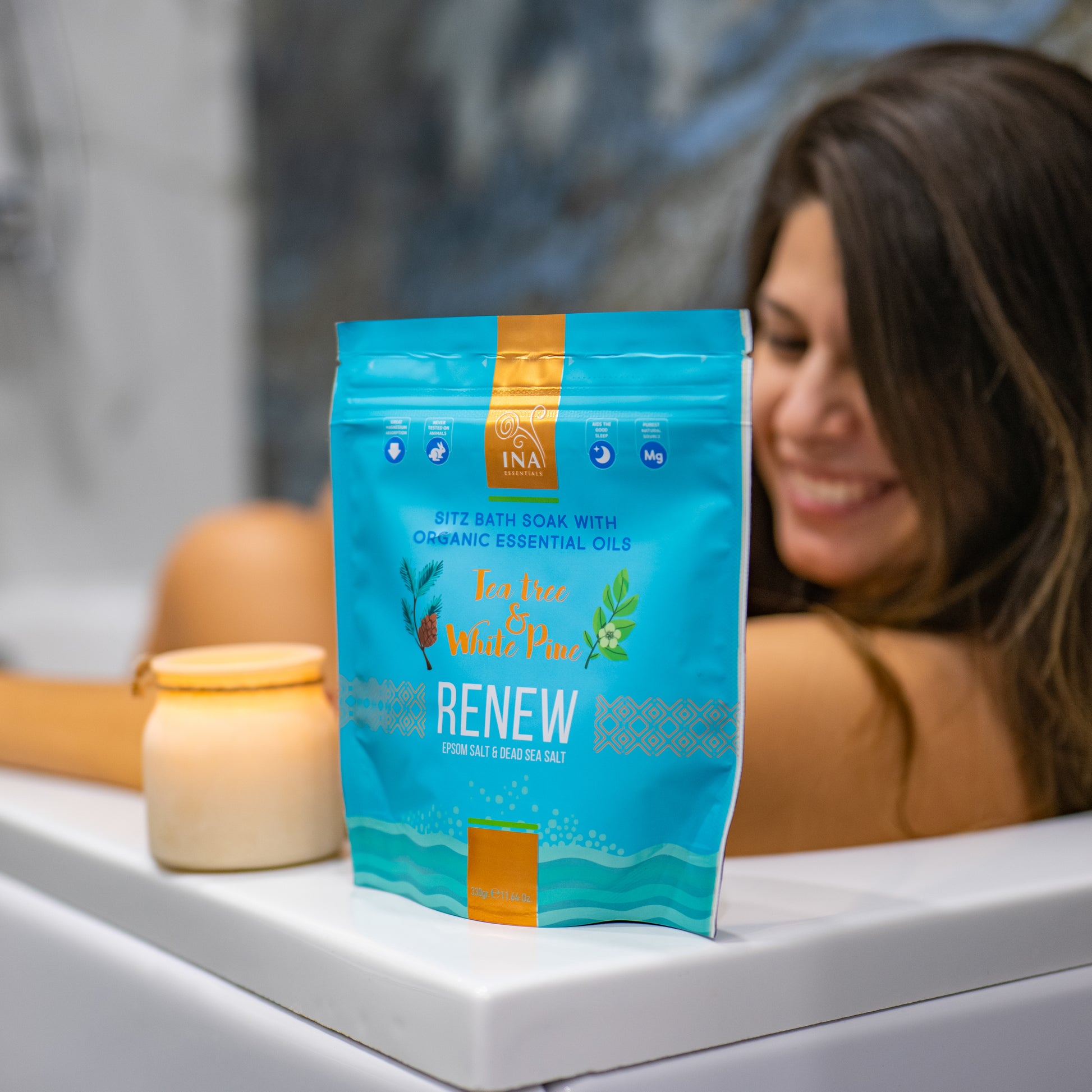 Renew soli za kupanje su napravljene od prirodnih sastojaka za zdravlje stopala. Eterična ulja čajevca i belog bora sadrže visoku koncentraciju hranljivih materija, izdvojenih iz biljaka. Kombinacija Epsom soli i soli Mrtvog mora je idealan način za negu kože stopala.